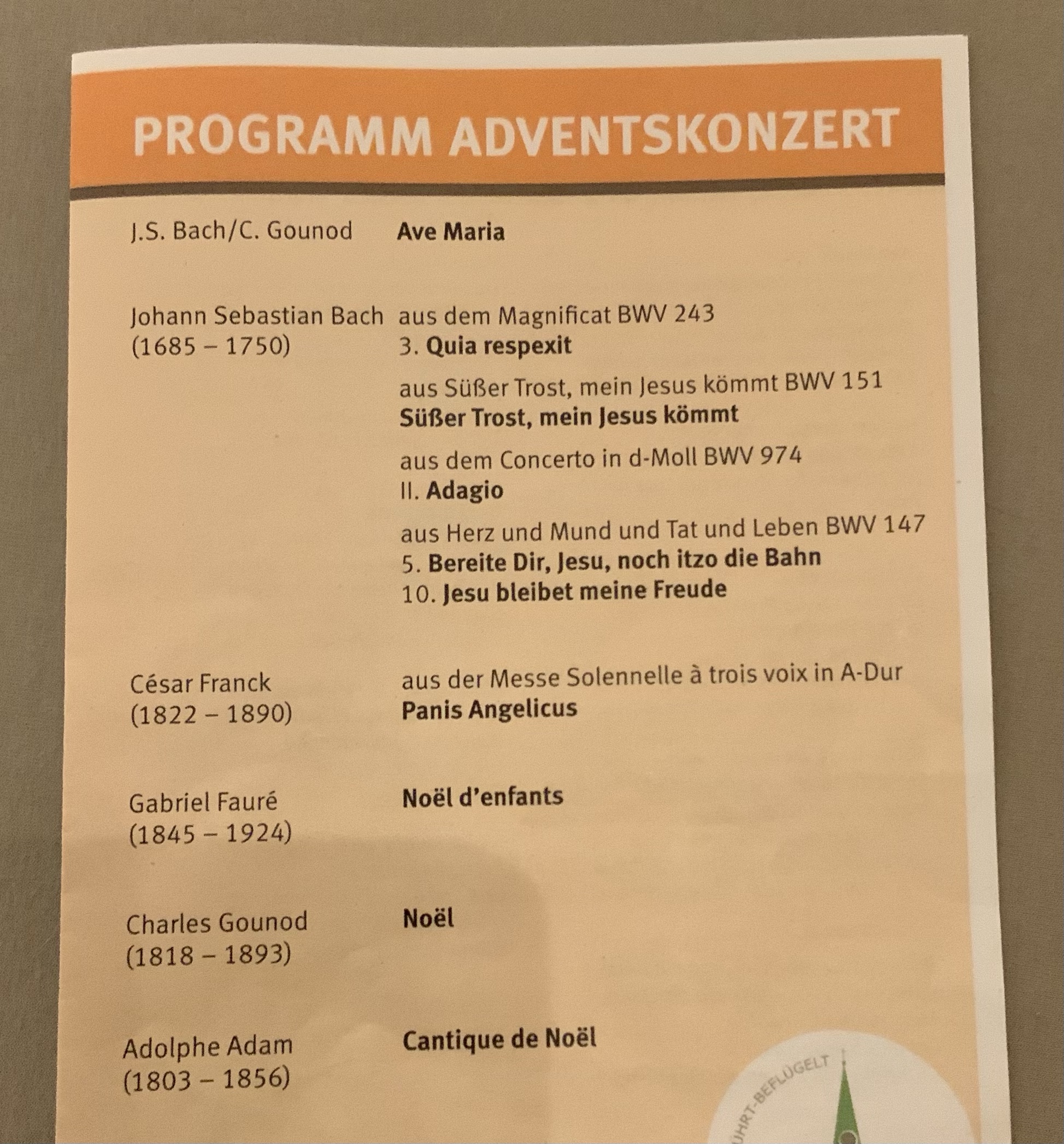 Am 1. Advent hatte mich der Organist der Gemeinde, in der ich in meinem ersten Jahr hier Dienst tat, zum Adventskonzert eingeladen. Anlass war das Klavier meines verstorbenen Vaters. Ich konnte es nach meinem Umzug ganz selbstverständlich und unbürokratisch dort im Gemeindehaus unterbringen, bis sich eine Lösung finden würde, auch als ich schon in die Nachbargemeinde gewechselt war. Nun hat es endlich eine neue Heimat gefunden und zwar in der wunderschönen Kirche eben der Gemeinde, in der es ohnehin schon stand. Frisch gestimmt kam es am 1. Advent zum ersten Mal bei einem Konzert zu Gehör. Aufgeführt wurde Advents- und Weihnachtsmusik von Bach und aus der französischen Romantik für Sopran, Geige und Klavier. Ich durfte neben dem Organisten in der ersten Reihe sitzen und bedankte mich hinterher bei ihm und den Musiker:innen und erzählte ihnen kurz die Geschichte.